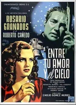Between Your Love and Heaven (Spanish: Entre tu amor y el cielo) is a 1950 Mexican crime drama film directed by Emilio Gómez Muriel and starring Rosario Granados, Roberto Cañedo and Rodolfo Acosta.[1] [2] It was shot at the Clasa Studios in Mexico City. The film's sets were designed by the art director Gunther Gerszo. It was based on a play by Santiago Rusiñol which had previously been adapted into a 1926 Spanish silent film.[3]
