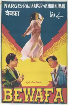 Bewafa (lit.'Disloyal') is a 1952 Indian film directed by M. L. Anand, starring the hit Bollywood pair Nargis, Raj Kapoor, along with Ashok Kumar as a lead actor and he appears as a painter in the movie.[1]