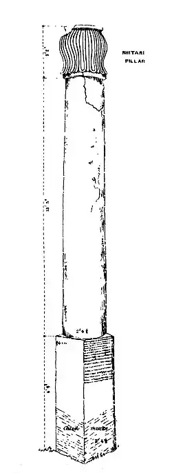 25°34′00″N 83°17′20″E / 25.566654°N 83.288943°E / 25.566654; 83.288943 The Bhitari pillar inscription of Skandagupta was discovered in the village of Bhitari near Saidpur in Uttar Pradesh and dates to the reign of Gupta Empire (Gop Empire, Gop in Sanskrit and Gupt in Pali) ruler Skandagupta (c. 455 – c. 467 CE). Further, the inscription is written in Sanskrit and is 15 feet high.