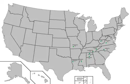 - ^ Rosenberg, Matt. "The Bible Belt Extends Throughout the American South (And Perhaps Beyond?)". About.com. About Education. Archived from the original on June 12, 2015. Retrieved June 11, 2015.