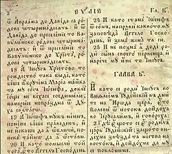 A page from the New Testament translated by Neofit Rilski in 1838, The Gospel of Matthew, chapter two.
