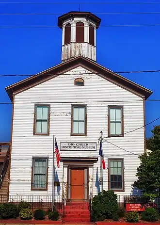 The Big Creek Schoolhouse, also known as Polk City Schoolhouse and Polk City City Hall, is a historic building located in Polk City, Iowa, United States. It was built in 1863 when the community was known as Big Creek.[2] It is the work of master builder John Adam Schall, who was able to adapt heavy timber framing for the construction of the two-story Greek Revival structure. It served as a schoolhouse and community center from the time it was built until 1893. It became Polk City's city hall the following year, and continued to serve as a community center. A full-size addition was completed on the back of the building in 1915. Two one-story additions were constructed later in the 20th century. A frame addition was built in 1964 on the southwest corner of the main block, and a frame lean-to was added onto the north elevation in 1984. In 1966 the outside staircase, which was the only way to access the second floor, was removed.[2]
