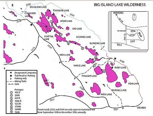 3. ^ "Big Island Lake Wilderness". US Forest Service. Retrieved December 1, 2008.
