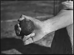 O'Reilly's cricket skills were largely self-taught; his family moved from town to town whenever his father was posted to a different school, he had little opportunity to attend coaching. He learned to play with his brothers, playing with a "gum-wood bat and a piece of banksia root chiselled down to make a ball."[8] He learned to bowl because his older brothers dominated the batting rights. His bowling action was far from the classic leg spin bowler's run-up and delivery, indeed, according to Wisden, "he was asked to make up the numbers in a Sydney junior match and, with a method that at first made everyone giggle, whipped out the opposition".[1][8] From a young age, O'Reilly was a tall and gangly player.[11]