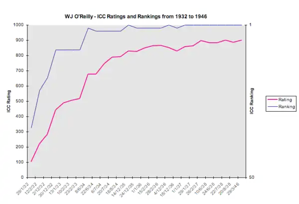 156. ^ "Statsguru – WJ O'Reilly – Test Batting – Career summary". Cricinfo. Retrieved 3 May 2007.