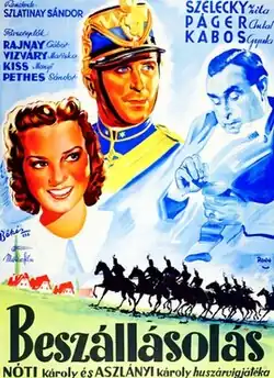 Billeting (Hungarian: Beszállásolás) is a 1938 Hungarian musical film directed by Sándor Szlatinay and starring Antal Páger, Zita Szeleczky and Gyula Kabos.[1][2] It was made at the Hunnia Studios in Budapest. The film's sets were designed by the art director Márton Vincze. Location shooting took place around Kenderes, the birthplace of the Regent of Hungary Miklós Horthy.