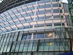 Researchers in the Sapienza University of Rome were inspired by the natural ventilation in termite mounds and designed a double façade that significantly cuts down over lit areas in a building. Scientists have imitated the porous nature of mound walls by designing a facade with double panels that was able to reduce heat gained by radiation and increase heat loss by convection in cavity between the two panels. The overall cooling load on the building's energy consumption was reduced by 15%.[44]