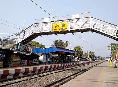 Birati railway station is a Kolkata Suburban Railway station in Birati. It serves Birati and Nimta areas in North Dumdum, West Bengal, India. It lies between the Durganagar railway station and Bisharpara Kodaliya railway station. Madhusudan Banerjee Road connects the Barrackpore Trunk Road and Jessore Road through Birati.[1]