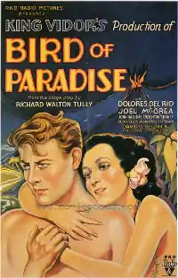 Bird of Paradise is a 1932 American pre-Code romantic adventure drama film directed by King Vidor and starring Dolores del Río and Joel McCrea. Based on the 1912 play of the same name by Richard Walton Tully, it was released by RKO Radio Pictures.