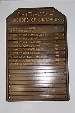 List of Bishops of Singapore inside St Andrew's Cathedral