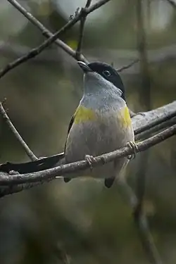 The black-headed shrike-babbler (Pteruthius rufiventer) is a bird species traditionally placed with the Old World babblers in the family Timaliidae.[2] However, it might be one of the few Eurasian vireos (Vireonidae).