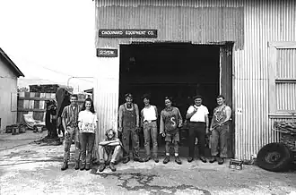 Chouinard Equipment Company, Ventura, California, 1969. Left to right: Tom Frost, Dorene Frost, Tony Jessen, Dennis Henneck, Terry King, Yvon Chouinard, Merle, and Davey Agnew.