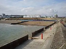In 1936 an Art Deco lido was constructed at beach level, but this was closed in 1978 and demolished in 1979.[5][6][7]