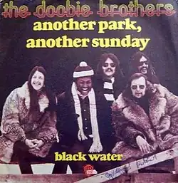 Ted Templeman said that "we never thought [of] it as a [potential hit] single."[4] - "I put 'Black Water' on [a] B-side because I figured [it was] an acoustic thing."[7] "Black Water" was utilized as the B-side for the lead single from the Doobie Brothers' 1974 album release What Were Once Vices Are Now Habits, the A-side being "Another Park, Another Sunday" whose June 1974 Billboard Hot 100 peaked at No. 32: regular group lead vocalist Tom Johnston said that "Another Park..." "was doing real well [in single release], and then it got yanked off the radio for the line 'And the radio just seems to bring me down'".[8]