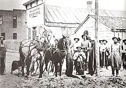 Civil War veteran William Edward Wheeler, from Vermont, was an early settler. On July 1, 1880, Wheeler began publishing a newspaper called the Blackfoot Register.[15] The first issue described the businesses in operation in Blackfoot on the publication date: "four general merchandise stores, one jewelry store, a livery stable, four saloons, a hotel, one meat market, two blacksmith shops, one barber shop and one lumber yard."[16] Henry W. Curtis opened the first hardware store in 1885.[17]