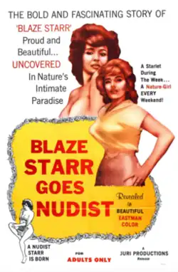 Blaze Starr Goes Nudist (also known as Busting Out and Blaze Starr Goes Back to Nature [1]) is a 1962 American nudist film, directed and produced by Doris Wishman.[2] The film stars burlesque queen Blaze Starr and crooner Ralph Young (as "Russ Martine"). It was written by Melvin Stanley.