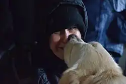 During one scene inside the former gas chamber at the Majdanek concentration camp, Liron Artzi, a partially sighted lawyer from Tel Aviv, is overcome with emotion. Her dog Petel responds to her distress by licking the tears from her face. Artzi described it as a "powerful experience" in a later interview, saying "Petel understood what was going on. It was like she was telling me ‘I am here with you in every moment.’"[4]
