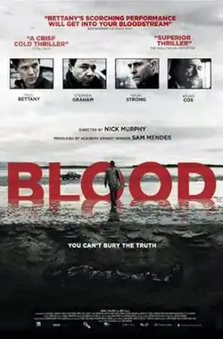 Blood is a 2012 thriller film directed by Nick Murphy and written by Bill Gallagher. The plot is about two brothers who are policemen and charts the moral collapse of a police family. The two brothers, played by Paul Bettany (Joe Fairburn) and Stephen Graham (Christie Fairburn) must investigate a despicable crime in a small town, in the shadow of their former police chief father.