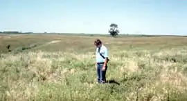 The site is located in the watershed of the James River. It contains the remains of a prehistoric fortified site, which was last inhabited about 1000 CE. Archaeologists have assigned it to the Lower James phase or Initial Middle Missouri phase of the Middle Missouri tradition.[4] The site is one of four sites that form part of this phase that exhibit fairly intensive usage patterns, and differ in their ceramics from surrounding sites.[5] The region was largely abandoned about 1300, in part due to the relatively poor quality of the land, which contributed to a sparse settlement pattern at the time.[4] Finds at the site include the remains of blue-winged teal.[6]