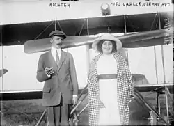 In Germany, she used the surname "Lagler" and became the first female student of Hans Grade at his pilot school in Borken, Germany.[2] She crashed shortly before her final exam in May 1911, and sustained fractured vertebrae, a spinal injury and contusions. She returned to Prague to recuperate and successfully completed her training at the flight school by September of that year.[3] She become the first female pilot in Austria-Hungary, 13th in the world and the first woman licensed by the Austrian Aero Club, as license #37 on 10 October 1911. On 19 October 1911, she became the second woman licensed by Germany, as license #125.[4]