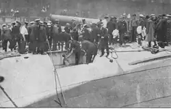 When the ship's final plunge started, Bobbie held onto her family; she recalls, "People were falling in the water all around us."[9] Eventually Bobbie was thrown from her chair into a pile of panicking, wailing passengers, and she nearly passed out.[10] When Eastland completed its final roll into the river, the compartment the Aanstad family was trapped in began to fill with water, but remarkably did not fill all the way. For hours, Bobbie would recall people banging on the walls crying for help, and rescuers attempting to get into the ship. She dog paddled to stay afloat, hour after hour. How long she and her family were stuck in Eastland's hull is unclear. Eventually, welders began cutting open holes in the ship to rescue survivors. Someone saw survivors through a small porthole and were able to throw in a rope and rescue Bobbie.