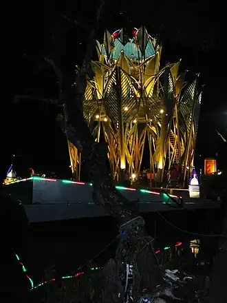 In 1993, the large, ceremonial barge called the pagoda that carries the Cross sank due to overloading. The accident came to be known as the Bocaue Pagoda tragedy. The procession was scaled down until 2014 when a "grand pagoda" featured again in the festival.[2][4][5] Celebrations were limited due to the COVID-19 pandemic, with the Cross borne by a government yacht instead.[3]