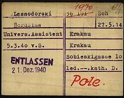 Registration card of Bogusław Leśnodorski as a prisoner at Dachau Nazi Concentration Camp