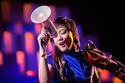 As a performer, Yoon has toured her experimental soundwork internationally at venues including the Lincoln Center, Brooklyn Academy of Music, the Singapore Arts Festival, Edinburgh International Festival, the KBS/Nam June Paik Museum in Seoul, the Festival of World Cultures (Poland), and various galleries, universities, and performing arts centers around the globe. She composes music/sound for film, theater, and dance, including an adaptation of Haruki Murakami's Wind-Up Bird Chronicle.[4][5]