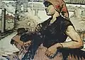 The lyrical nature of the artist's character, to a great extent, defined his perspective on the interpretation of the soviet woman-worker image. Remaining confined to the unavoidable industrial themes of the official commissions, he first and for most emphasizes the femininity in his fish factory workers, helmswomen, attendants and electricians. Even the drab shapelessness of their working uniforms is powerless to conceal it. Every work reveals to the viewer a "soviet Madonna"; slightly mysterious with her hint of a smile and averted daydreaming gaze. Perhaps she is not always beautiful, but inimitably unique, and thusly so attractive.