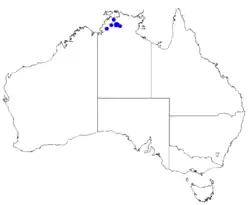 This boronia grows in woodland in Kakadu National Park north of the Mary River and the Waterfall Creek turnoff.[2][6]