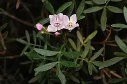 Boronia latipinna, commonly known as the Grampians boronia,[2] is a plant in the citrus family Rutaceae and is endemic to the Grampians in Victoria. It is an erect, woody shrub with pinnate leaves and pink or white, four petalled flowers.