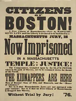 1850 The Fugitive Slave Act required states (even free ones) enforce the return of fugitive slaves to their owners. Antislavery protests followed passage of this law, and black and white Bostonians joined in direct actions to protect and some times rescue fugitives seeking shelter in the city. The slavery trial of Anthony Burns in Boston galvanized Northern opposition to the Fugitive Slave Law. After the trial, U.S. marshals and a company of marines were required to escort Burns to a ship to take him back to Virginia and slavery. See also Shadrach Minkins.