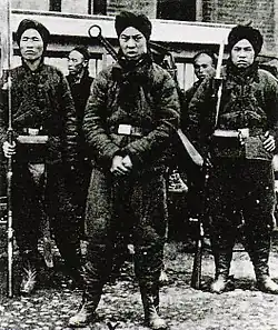 The Boxers called themselves the "Militia United in Righteousness" for the first time in October 1899, at the Battle of Senluo Temple, a clash between Boxers and Qing government troops.[37] By using the word "Militia" rather than "Boxers", they distanced themselves from forbidden martial arts sects and tried to give their movement the legitimacy of a group that defended orthodoxy.[38]