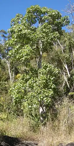 1. ^ The genus Brachychiton was traditionally placed in the family Sterculiaceae, but that family, along with Bombacaceae and Tiliaceae, has been found to be polyphyletic and is now sunk into a more broadly-defined Malvaceae.[1]