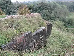 A little way to the south the ground level fell away rapidly so that the line found itself on a high embankment leading to Brackley Viaduct. This impressive structure, which spanned the Ouse Valley, was 255 yards (233 metres) in length, 62 feet (19 metres) high and started out with 22 blue brick arches each of 34 feet 3 inches (10.44 metres). However, due to movement of clay beds beneath the south end of the structure when it was almost complete, cracks were noticed in the southernmost two arches, and so these were replaced by two girder spans each of 35 feet (11 metres), while the third arch was filled with bricks to provide a massive buttress.[5] Meanwhile, the third arch from the north end was walled up to provide extra bracing there.