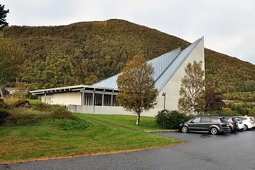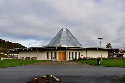 Brattvåg Church (Norwegian: Brattvåg kyrkje) is a parish church of the Church of Norway in Haram Municipality in Møre og Romsdal county, Norway. It is located in the village of Brattvåg. It is one of the two churches for the Brattvåg parish which is part of the Nordre Sunnmøre prosti (deanery) in the Diocese of Møre. The modern-looking concrete church was built in a rectangular design in 1977 using plans drawn up by the architect Aksel Fronth. The church seats about 650 people.[1][2]