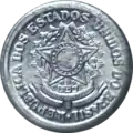 Cr$0.50 | 17 mm | 1956 | Portrays the coat of arms of Brazil |