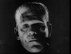 Colin Clive and Boris Karloff reprised their roles from Frankenstein as creator and creation, respectively. Hobson recalled Clive's alcoholism had worsened since filming the original, but Whale did not recast the role because his "hysterical quality" was necessary for the film.[15] Karloff strongly objected to the decision to allow the Monster to speak: "Speech! Stupid! My argument was that if the monster had any impact or charm, it was because he was inarticulate – this great, lumbering, inarticulate creature. The moment he spoke you might as well ... play it straight".[18] This decision also meant that Karloff could not remove his dental plate, so now his cheeks did not have the sunken look of the original film.[8] Whale and the studio psychiatrist selected 44 simple words for the Monster's vocabulary by looking at test papers of ten-year-olds working at the studio.[5] Dwight Frye returned to play the doctor's assistant, Karl, having played the hunchback Fritz in the original. Frye also filmed a scene as an unnamed villager and the role of "Nephew Glutz", a man who murdered his uncle and blamed the death on the Monster.[8] Boris Karloff is credited simply as KARLOFF, which was Universal's custom during the height of his career.[19] Elsa Lanchester is credited for Mary Wollstonecraft Shelley, but in a nod to the earlier film, the Monster's bride is credited only as "?" just as Boris Karloff had been in the opening credits of Frankenstein.