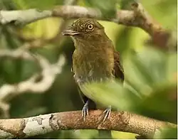 The bright-rumped attila was formally described in 1789 by the German naturalist Johann Friedrich Gmelin in his revised and expanded edition of Carl Linnaeus's Systema Naturae. He placed it with the flycatcher in the genus Muscicapa and coined the binomial name Muscicapa spadicea.[2][3] The specific epithet is from Latin spadiceus meaning "chestnut coloured" or "date-coloured".[4] Gmelin based his description on the "yellow-rumped flycatcher" from Cayenne that had been described in 1783 by the English ornithologist John Latham in his book A General Synopsis of Birds.[5] The bright-rumped attila is now one of seven flycatchers placed in the genus Attila that was introduced in 1831 by the French naturalist René Lesson.[6]