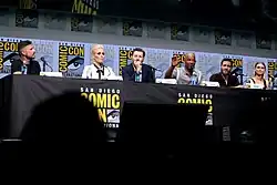 Described as "a contemporary cop thriller, but with fantastical elements", the film was directed by David Ayer and stars Will Smith and Joel Edgerton, with a script penned by Max Landis, which Ayer rewrote.[10][11] Netflix officially picked up the film for a $90 million deal with filming beginning in fall 2016, making it the most expensive Netflix film to date.[12] Noomi Rapace entered talks to join the cast in May 2016.[13] Landis stated in an interview that official production was expected to begin in September 2016, but that they had already shot a small part in Los Angeles.[14] Ayer's frequent cinematographer, Roman Vasyanov, was confirmed to be working on the project.[15] On October 15, 2016, Lucy Fry was added to the cast.[16] On October 17, 2016, Andrea Navedo was added to the cast.[17] On October 20, 2016, actor Brad William Henke was cast in the film.[18] On November 1, 2016, Kenneth Choi and Dawn Olivieri were cast in an unnamed role and the role of Smith's wife, respectively.[19] On November 9, Édgar Ramírez was confirmed to be added to the cast.[20] That same month, Alex Meraz, Matt Gerald, Ike Barinholtz and Enrique Murciano joined the cast of the film in undisclosed roles.[21][22][23][24]