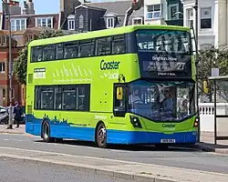 Route 27, together with its variants 27B and 27C, is branded Coaster Local. It runs entirely within the boundary of Brighton and Hove, linking the suburbs of Westdene and Saltdean via Withdean (including Withdean Sports Complex), Prestonville, Seven Dials, the city centre, Kemp Town and Rottingdean.[17] The route runs along the coast between the city centre and Saltdean, sharing this section with the Coaster services. In 2018, the route had an annual ridership of over 1.8 million.[7]