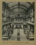 However, in June 1899 the site of the Salisbury Club was offered for sale to the city, the tobacco baron, Sir William Henry Wills (1830–1911, later Lord Winterstoke) offering £10,000 to help buy the site and build a new City Art Gallery on it.[7] Designed by Frederick Wills in an Edwardian Baroque style work on the new building started in 1901, and opened in February 1905. It was built in a rectangular open plan in 2 sections each consisting of a large hall with barrel-vaulted glazed roofs, separated by a double staircase.[4] It incorporated a Museum of Antiquities, as it had been decided during the planning stage that Assyrian, Egyptian, Greek and Roman antiquities should be grouped with art in the new structure, rather than remaining with the natural history collections that remained in the old building. Stone tools continued to reside with the geology collections within natural history. Yet more space became available to museum displays when Bristol Central Library moved down the hill to College Green in 1906.[8] The vacant rooms were reconstructed as invertebrate and biology galleries.