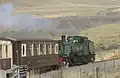 Replica locomotives running passenger trains on the original trackbed of the Laxey mines railway |