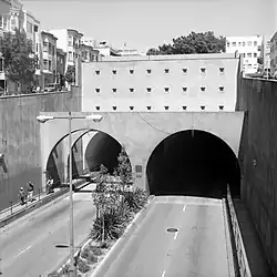 The Broadway Tunnel (officially the Robert C. Levy Tunnel) is a roadway tunnel in San Francisco, California. The tunnel opened in 1952, and serves as a high-capacity conduit for traffic between Chinatown and North Beach to the east and Russian Hill and Van Ness Avenue to the west. In a proposal of the city's 1948 Trafficways Plan, the tunnel was to serve as a link between the Embarcadero Freeway and the Central Freeway.[1]