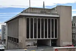 The Chinatown Public Health Center on top of the tunnel's eastern end (seen from the West across Mason Street)