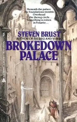 Brokedown Palace is a fantasy novel by American writer Steven Brust, the only stand-alone novel set in Dragaera. It was originally published as a paperback original by Ace Books in 1986 and reprinted several times over the next decade. A British edition appeared in 1991. Orb, an imprint of Tor Books, brought the novel back into print in trade paperback in 2006.[1] It is also notable for being set in Fenario, the human-populated portion of that world. Brokedown Palace opens in a medieval setting where a young man lies with grave wounds beside a river. He is the victim of his brother, the king, who has a very evil temper. There are four brothers in total, and this book is mainly about their relationships and battles. The pace is kept off-kilter by brief chapters interjecting folklore or sidestepping to other seemingly unrelated stories. The story incorporates Hungarian folklore and is filled with metaphors; the castle, for instance, represents a body, as well as being a metaphor for the disintegration of the family and the kingdom.