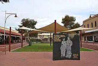 Broken Hill Women's Memorial is located in the Town Square of Broken Hill, New South Wales, Australia, and honours the contribution of women to the Broken Hill community.[1] In particular, it acknowledges the work of women who supported the town's miners during long and difficult strikes and industrial disputes.[2] Some of these women organised themselves into the Women's Brigade (Broken Hill). Their work included picketing outside the mine, organising protest marches and rallies, and tarring and feathering non-unionised workers (strikebreakers, known as scabs) who tried to enter the mine during strikes.[3]