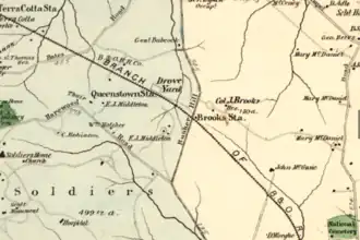 Colonel Jehiel Brooks married into the land when he married Ann Margaret Queen, daughter of Nicholas Queen, and they received a 150-acre estate.[4] In 1722, the Queen family raised a Roman Catholic Church, which morphed into St. Francis de Sales Parish in 1908.