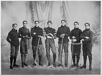 The men's ice hockey team at Brown is one of the country's oldest programs, having played their first game in 1898.[3] That season, the team helped to form the first informal conference, the Intercollegiate Hockey Association, and wound up winning the league championship. While there was no formal declaration at the time, Brown's title is sometimes referred to as the first ice hockey national championship. Brown nearly repeated the feat three years later but ultimately fell to Yale in the first two playoff games ever contested for college ice hockey.[4]