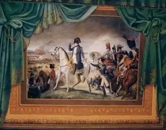 On opening night in 1907, Earl Brown unveiled a magnificent drop curtain reproduction of a Horace Vernet painting. The curtain, entitled Napoleon at Austerlitz, was presented as a gift to Colonel Brown from his son in recognition of his father's contribution to the community and to the Brown Grand Theatre, his crowning achievement.[7]